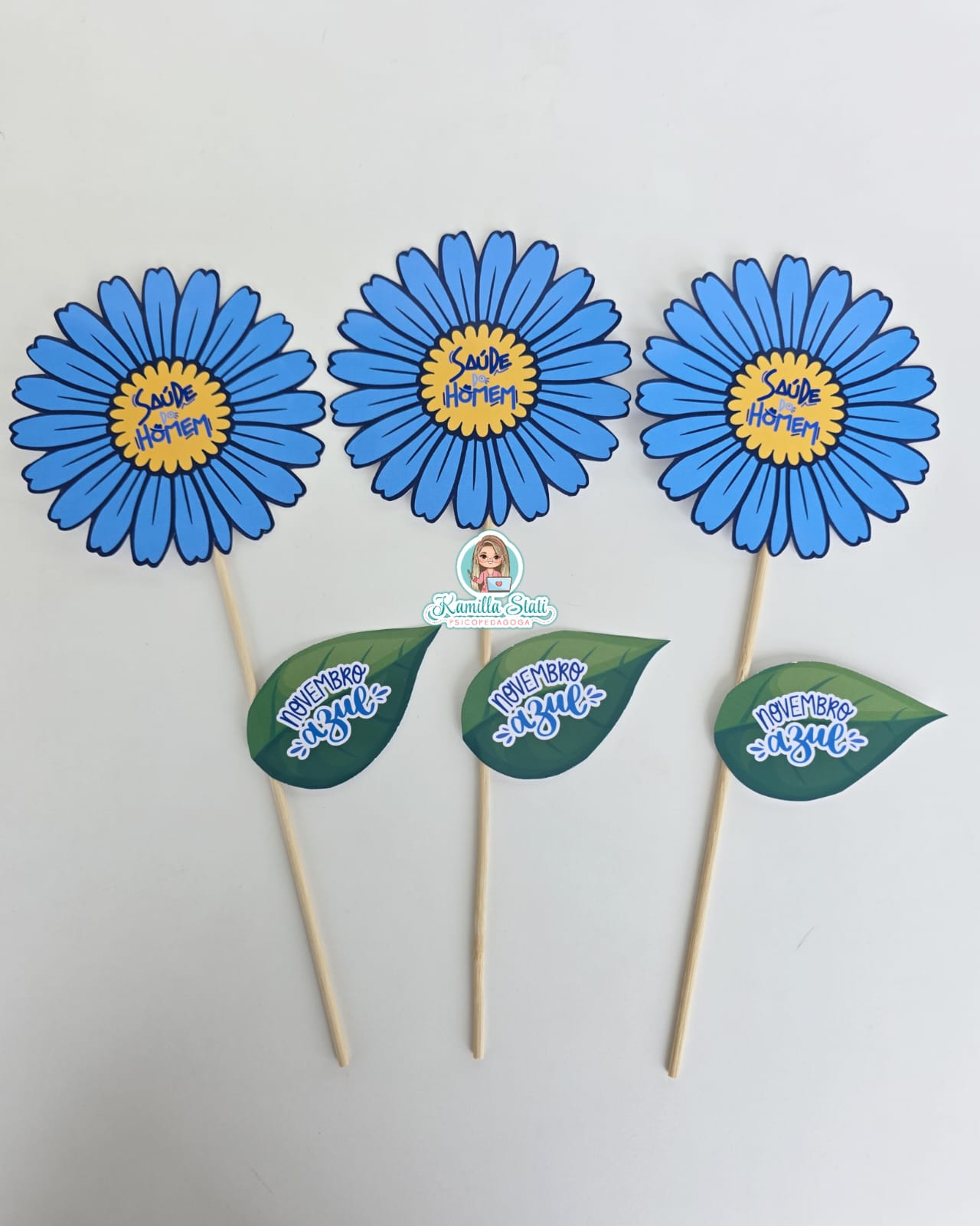 ✨ Reforce o cuidado com a saúde do homem de forma leve e educativa, envolvendo toda a comunidade nessa causa tão importante. Composto por um modelo de flor + 1 modelo de folha para colar em palito de churrasco.